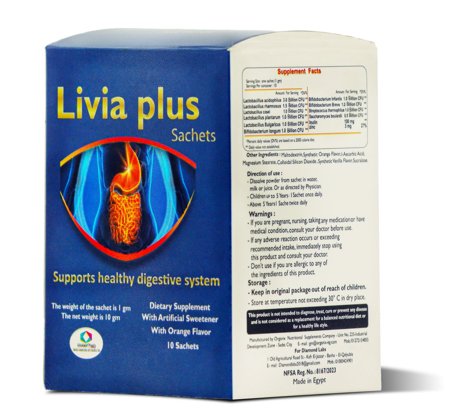 - These sachets contain a potent blend of multi beneficial bacteria strains, including Lactobacillus acidophilus, Bifidobacterium bifidum,with Inulin for the 1st time to contain Pre& Pro biotic , designed to replenish and restore the healthy balance of gut flora.